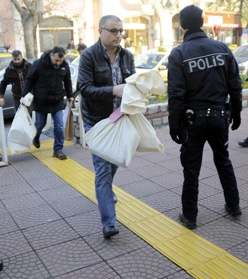 Bu sırada çevik kuvvet ekipleri adliye girişinde güvenlik önlemi aldı. Polis ekipleri, şüphelilerin girişinin ardından çuvallardaki evrakları adliyeye taşıdı.