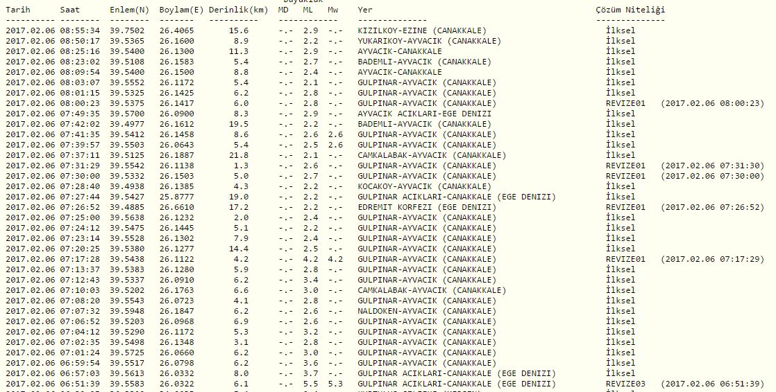 Başbakanlık Afet ve Acil Durum Yönetimi Başkanlığı (AFAD) Deprem Dairesinin tespitine göre, Çanakkale'nin Ayvacık ilçesinde 5,3 büyüklüğündeki deprem saat 06.51'de kaydedildi.