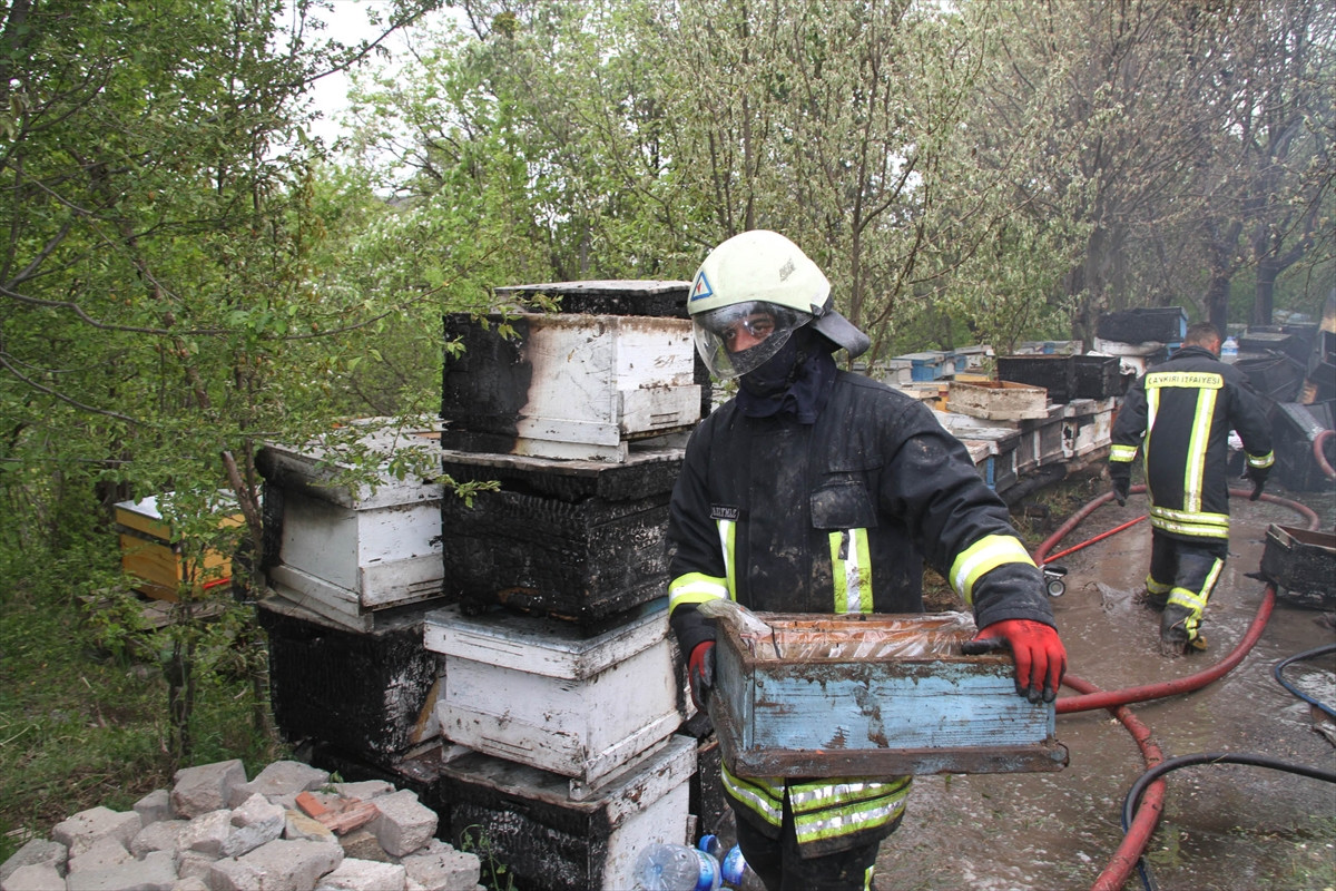ÇANKIRI (AA) - Çankırı'da arı kovanlarının bulunduğu bahçede çıkan yangında 30 kovan kül olurken arıların soktuğu 2 itfaiye görevlisine sağlık ekipleri müdahale etti.