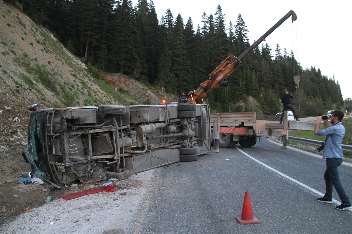 Alınan bilgiye göre, Kastamonu'dan Ankara yönünde giden sürücüsü henüz belirlenemeyen 37 HA 848 plakalı tur otobüsü Ilgaz Dağı Derbent mevkisinde devrildi.