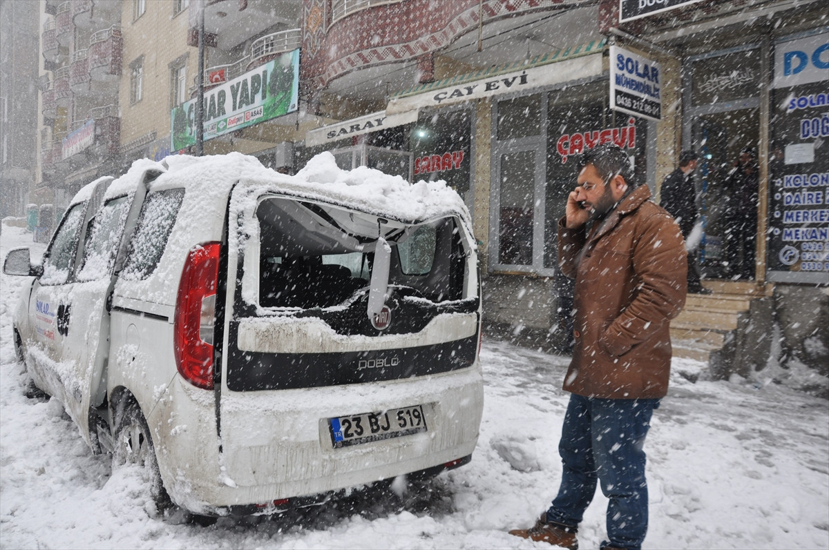 Alınan bilgiye göre, Cumhuriyet Caddesi'ndeki bir iş yerinin önünde park halinde bulunan, özel firmaya ait 23 BJ 519 plakalı otomobilin üzerine, binanın çatısında biriken kar kütlesi düştü.