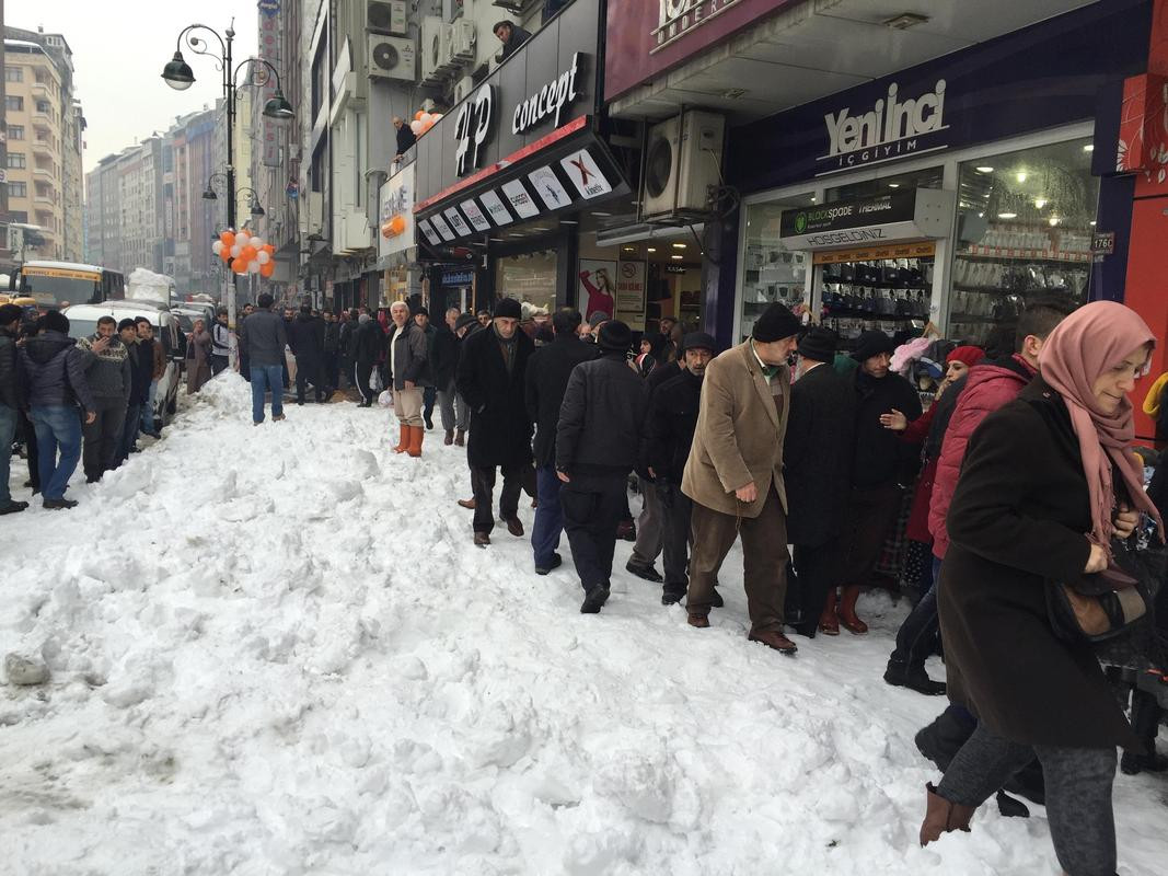 Cumhuriyet Caddesi üzerinde bulunan Kazdal Camisi'nin çatısında bulunan kar kütlesi, cadde yürüyen vatandaşların üzerine düştü. Çarpmanın etkisiyle düşerek kar kütlesinin altında kalan bir kişi, kendi çabasıyla çıkmayı başardı.