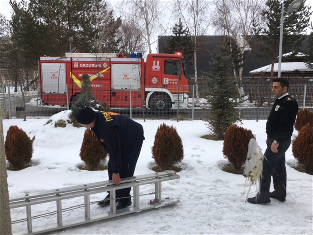 Aziziye Mahallesi 1. Organize Caddesi'nde bir iş yerinin çatısında karganın kanadının takıldığını gören vatandaşlar, hayvanı kurtarmak için girişimde bulundu. Vatandaşlar başarılı olamayınca durumu itfaiye ekiplerine bildirdi.
