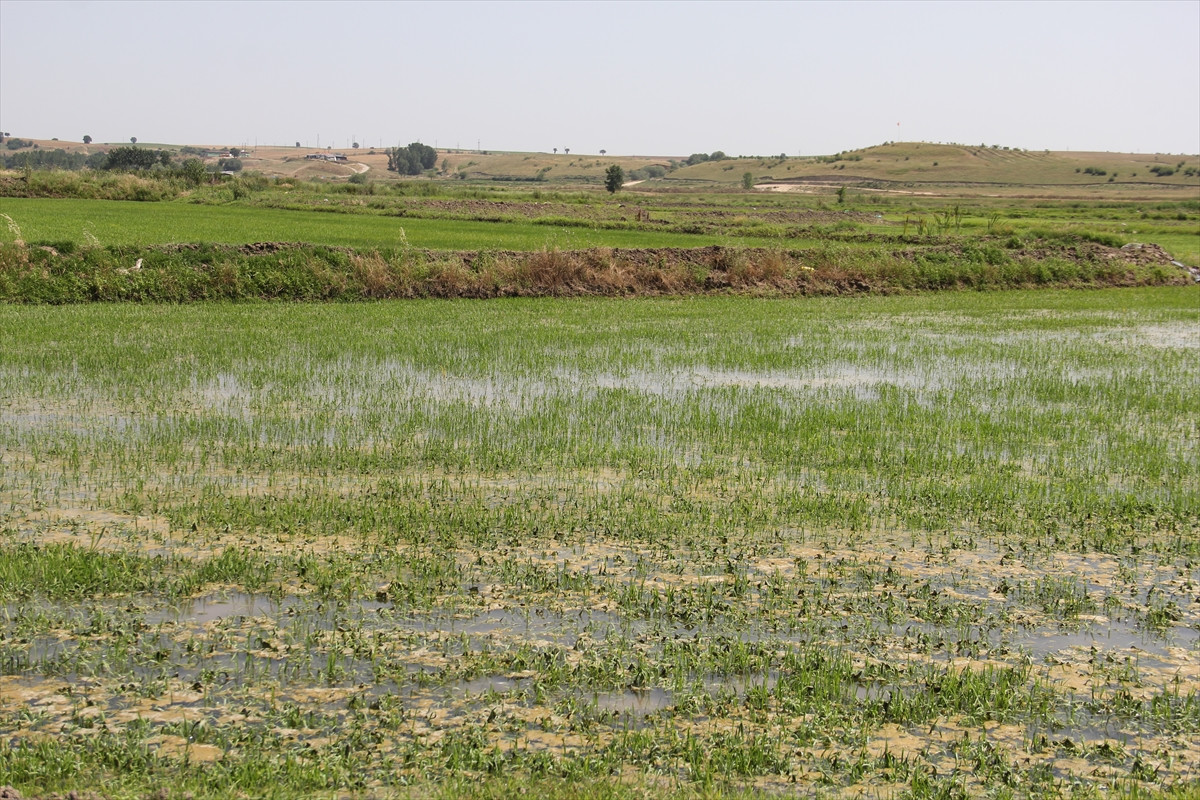 EDİRNE (AA) - Çeltik üretiminin önemli merkezlerinden Edirne’de çeltik üreticisi tohumunu attıkları tarlada yabancı otla mücadeleye başladı.