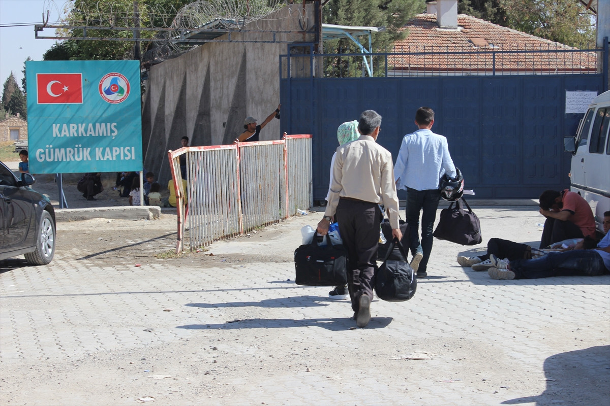 Gaziantep Valiliğinin Karkamış ilçesinde kayıt işlemleri yapılan Suriyeliler, Göç İdaresi İl Müdürlüğü ekiplerinin nezaretinde ülkelerine geçiyor. Yanlarına aldıkları eşya ve bavullarıyla Karkamış Gümrük Kapısı'na gelen çoğunluğu kadın ve çocuklardan oluşan Suriyeliler, güvenlik kontrolünden sonra Cerablus'a gönderiliyor.