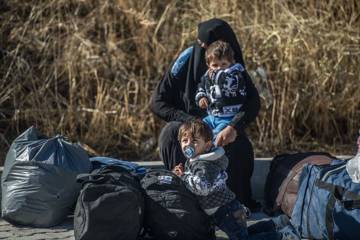 Gaziantep Valiliğince Karkamış ilçesinde kayıt işlemleri yapılan Suriyeliler, Göç İdaresi İl Müdürlüğü ekiplerinin nezaretinde ülkelerine dönüyor. Yanlarına aldıkları eşya ve bavullarıyla Karkamış Gümrük Kapısı'na gelen aralarında kadın ve çocukların bulunduğu bir grup Suriyeli, güvenlik kontrolünden sonra Cerablus'a geçiyor.