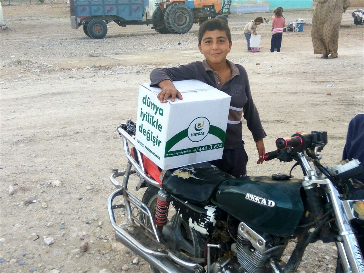 HATAY (AA) - Fırat Kalkanı Harekatı kapsamında terör örgütü DEAŞ'tan kurtarılan Cerablus'a, Hayrat Yardım Derneğince gıda yardımı yapıldı.