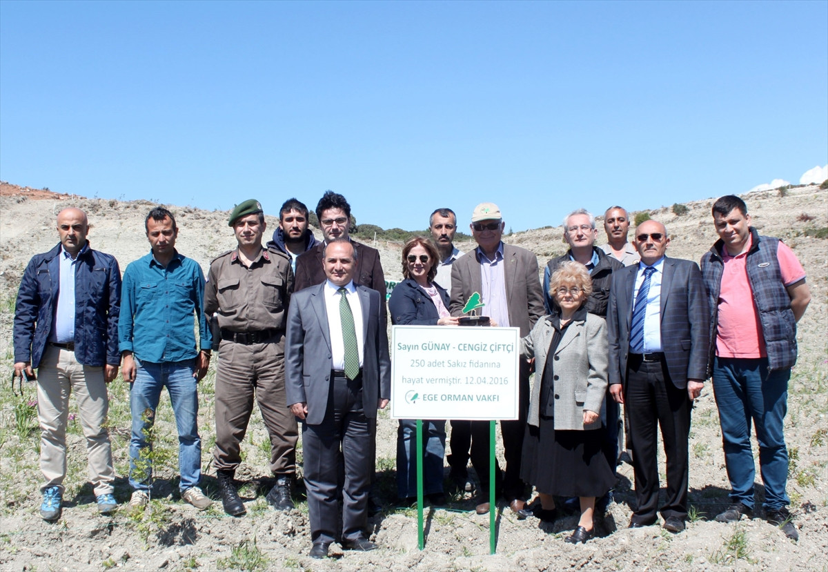 Vakıftan yapılan açıklamaya göre, Günay Çiftçi'nin ilk 250 sakız fidanı bağışının ardından 90 hektarlık alanda tek bölümde Türkiye'nin en büyük sakız bahçesi olacak sahada sembolik bir fidan dikim töreni düzenlendi.