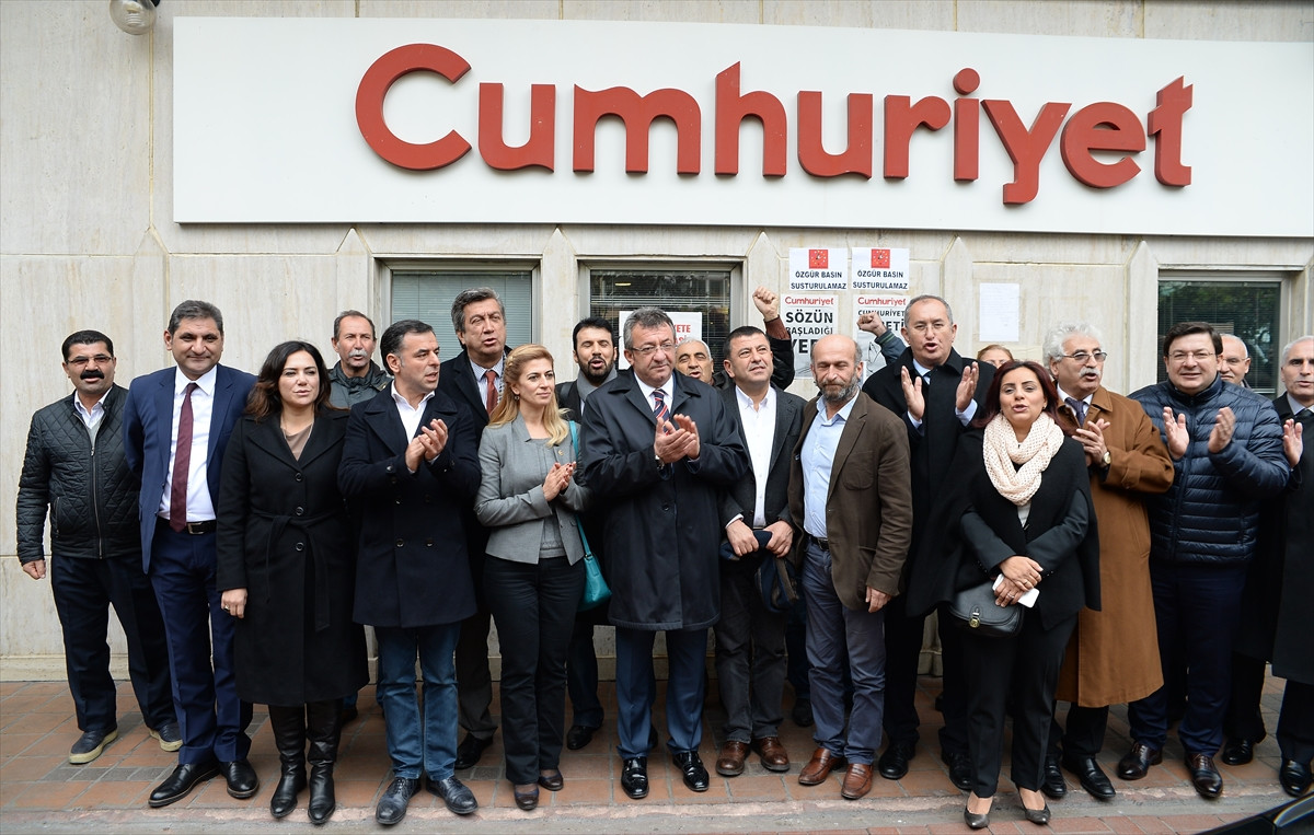 İstanbul 14. Ağır Ceza Mahkemesi'nde yargılanmaları devam eden Cumhuriyet gazetesi eski Genel Yayın Yönetmeni Can Dündar, gazetenin Ankara Temsilcisi Erdem Gül ile birleştirilen dosya sanığı CHP Milletvekili Enis Berberoğlu'na Çağlayan Adliyesinde destek açıklamasını yapan CHP milletvekilleri, buradan yürüyerek Cumhuriyet Gazetesine geldi. Cumhuriyet Gazetesi çalışanlarıyla görüşen CHP'li milletvekilleri, açıklama yapmadan buradan ayrıldılar. CHP'li milletvekilleri Gürsel Tekin, İlhan Kesici, Engin Altay, Selina Doğan, Barış Yarkadaş, Erdoğan Toprak, Atilla Sertel, Veli Ağbaba, Muharrem İnce, Candan Yüceer, Ali Özcan, Sezgin Tanrıkulu, Hilmi Yarayıcı, Mehmet Tüm, Didem Engin, Cemal Okan Yüksel, Yaşar Tüzün, Erdin Bircan, Tur Yıldız Biçer, Bülent Öz, Namık Havutça, Mehmet Göker, Mazlum Nurlu, Mahmut Tanal, Utku Çakır Özer, Tanju Özcan, Tuncay Özkan, Muharrem Erkek, Aykut Erdoğdu ile CHP İstanbul İl Başkanı Cemal Canpolat ve CHP PM üyesi Kadir Gökmen Öğüt gazeteyi ziyaret eden isimler arasındaydı.