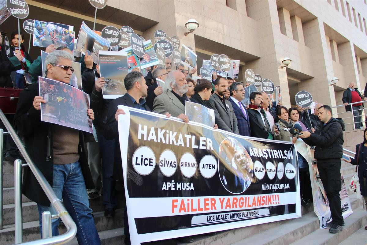 Grup adına açıklama yapan Avukat Şiyar Kaymaz, "Lice davası"nda mağdur ailelerin avukatlığını yapan eski Diyarbakır Barosu Başkanı Tahir Elçi'nin katledilmesinin kendilerini derinden sarstığını ifade etti.