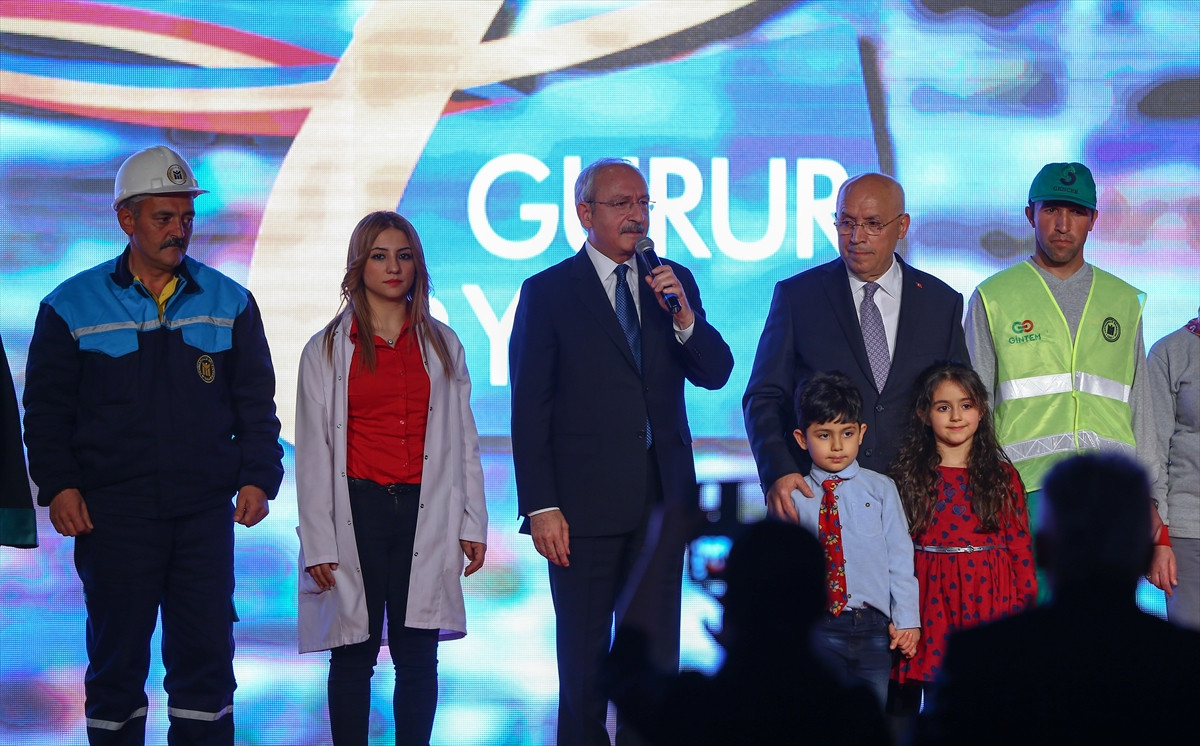 Kılıçdaroğlu, Türkiye Cumhuriyeti'nin kuruluş yıllarında Mustafa Kemal Atatürk ve İsmet İnönü'nün gösterdiği kalkınma çabasının her dönem için örnek teşkil ettiğini ifade ederek, "Mustafa Kemal Atatürk, 'savaş meydanlarında kazanılan zaferler yetmez, Cumhuriyetin devamlılığı için o zaferlerin ekonomik zaferlerle taçlandırılması lazım' diyor ve bunun mücadelesine giriyorlar. Kendi uçağını, kendi deniz altısını yapan, kendi fabrikalarını kuran, bütün ülkeyi demir ağlarla ören bir Cumhuriyet oluşturuyorlar." diye konuştu.