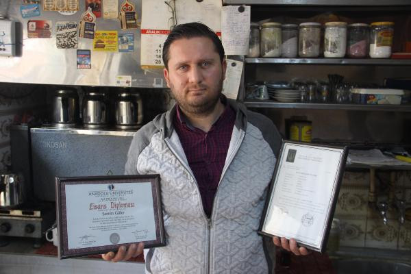 Müşterilerinin kendisine, iki üniversite mezunu olduğu için 'Diplomat' dediklerini anlatan Semih Güler, "Hocam diyenler de var. Çay ocağını saat 06.00'da açıp 20.00'de kapatıyorum. Başka bir işte bu kadar mesai yapsam herhalde patronun gözüne girerdim" diye konuştu.