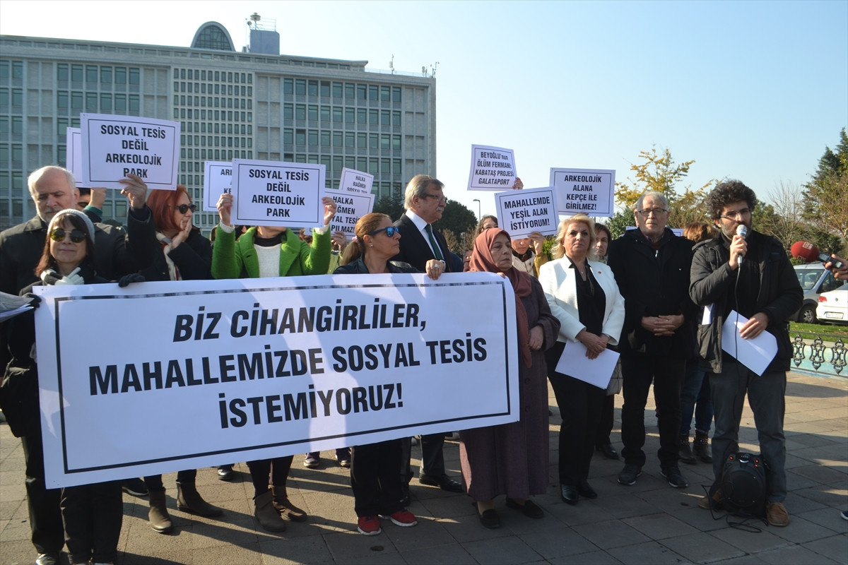 İstanbul Büyükşehir Belediyesinin Saraçhane'deki binası önünde toplanan grup üyeleri, "Biz Cihangirliler, Mahallemizde Sosyal Tesis İstemiyoruz" yazılı pankart açtı. "Sosyal Tesis Değil Arkeolojik Park", "Beyoğlu'nun Ölüm Fermanı; Kabataş Projesi Galataport", "Arkeolojik Alana Kepçe ile Girilemez" yazılı dövizler de taşıyan gruptakiler, basın açıklaması yaptı.