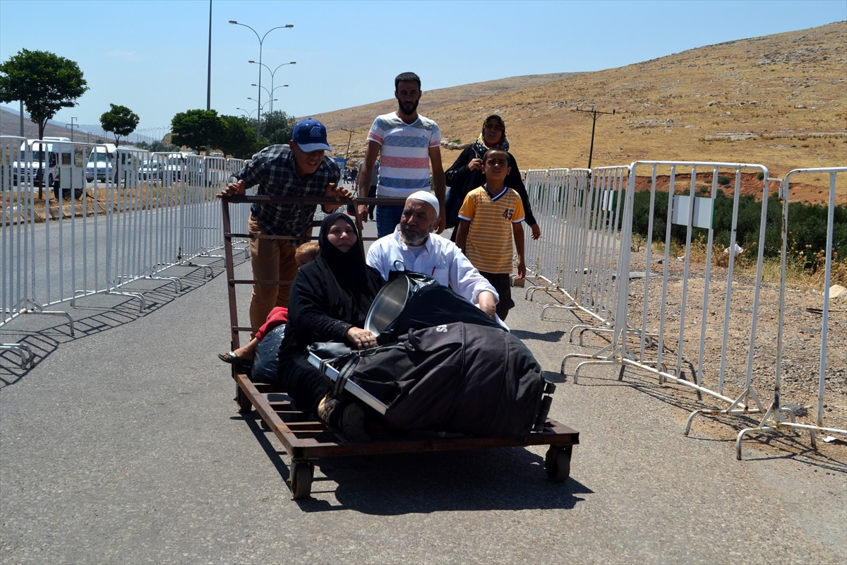 Çoğunluğu yaşlı ve çocuk olan Suriyeli aileler, bayramı savaş nedeniyle terk etmek zorunda kaldıkları ülkelerinde ve geride bıraktığı akrabalarıyla geçirmek için sabah erken saatlerde sınır kapısının önüne geldi.