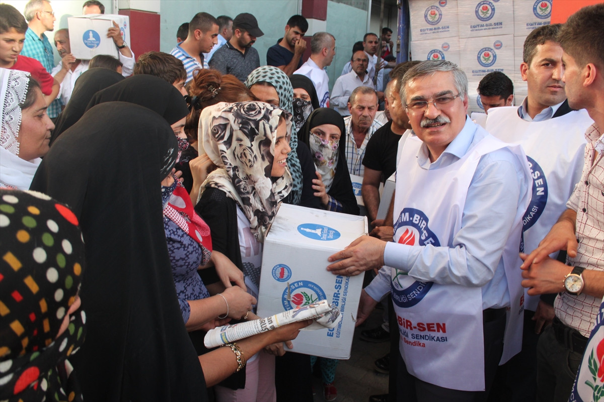Türk Silahlı Kuvvetleri (TSK) ile emniyet mensuplarınca gerçekleştirilen "Şehit Jandarma Astsubay Kıdemli Çavuş Burak Demirci" operasyonu ile PKK'lı teröristlerden temizlenen Cizre'de bin 200 aileye yardımlar Eğitim-Bir-Sen Genel Başkan Vekili Latif Selvi ve Genel Başkan Yardımcısı Şükrü Kolukısa tarafından dağıtıldı.