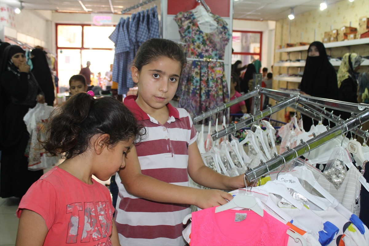 Cami görevlileri ve Kur'an kurslarındaki eğiticilerin mahallelerinde belirlediği yetim ve öksüzler, ilçedeki mağazalarda 100 liralık bayram alışverişi yaptı.