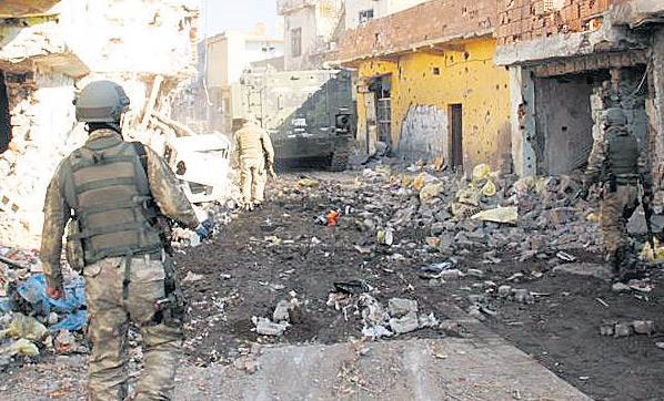 PKK'ya karşı sürdürülen operasyonlar nedeniyle sokağa çıkma yasağının ilan edildiği Cizre'de çatışma yaşandı. Güvenlik güçleri ve teröristler arasında yaşanan olayda, 1 polis şehit oldu. İlçenin Sur mahallesinde teröristleri etkisiz hale getirmek ve hendekler ile barikatları kaldırmak amacıyla düzenlenen operasyonda güvenlik güçleri ile teröristler arasında çatışma çıktı. Çatışmada, 1 özel harekat polisi şehit oldu. Bölgede çatışmalar sürüyor. SUR'DA İKİ YARALI Diyarbakır’ın merkez Sur İlçesi’nde 2 Aralık günü 6 mahallede hendeklerin kapatılması, barikatların kaldırılması ve PKK’lıların etkisiz hale getirilmesi için konulan sokağa çıkma yasağı sürüyor. Genelkurmay Başkanlığı’na bağlı Özel Kuvvetler ile polis ve Jandarma özel harekat timlerinin katıldığı operasyonlarda bugün ilçeden sık sık silah ve patlama sesleri yükseldi. Çatışmaların yaşandığı Hasırlı Mahallesi’nde teröristlerin düzenlediği raketatarlı saldırıda 2 uzman çavuş yaralandı. Yaralı askerler bölgede bekletilen ambulanslarla Diyarbakır Asker Hastanesi’ne kaldırılarak tedavi altına alınırken, birinin durumunun ciddi olduğu belirtildi. BOMBA İMHA EDİLDİ PKK’lıların tuzakladığı bombaların imhası da büyük bir titizlikle yürütülen ilçede Emniyet Müdürlüğü’nün arkasında bulunan ve sokağa çıkma yasağı olmayan Bekçi Sokak üzerinde bomba tuzaklandığı belirlendi. Polis bölgedekileri uzaklaştırıp, gerekli güvenlik önlemleri aldıktan sonra bomba kontrollü şekilde yerinde imha edildi. Tarihi Ulucami’de ise vatandaşlar bugün Cuma namazını patlama ve silah sesleri arasında kıldı. Bu arada Sur’daki operasyonlara destek vermek için Dağkapı Meydanı’na getirilen bir tank bugün ilçe merkezine sokuldu. Gazi Caddesi üzerinden geçiş yapan tank bazı vatandaşlar tarafından cep telefonu ile görüntülendi.