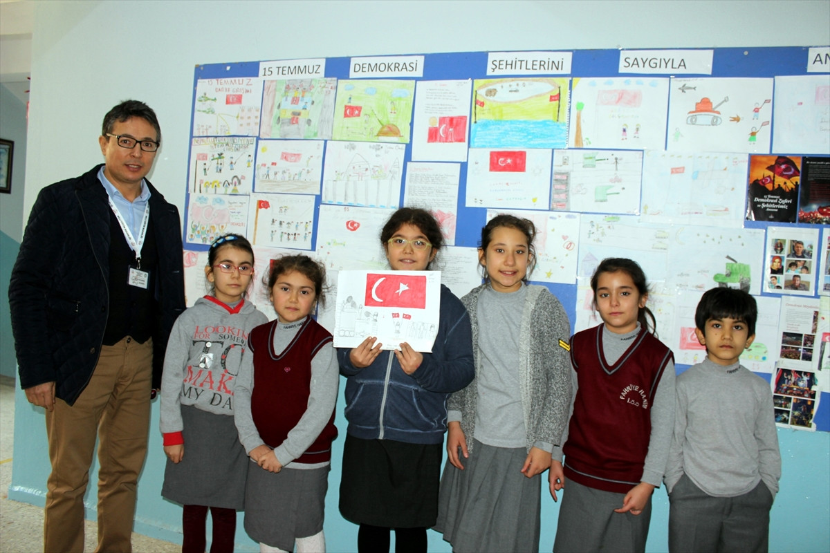 Bu amaçla okulda öğrencilerden 15 Temmuz'u resme taşımalarını istediklerini aktaran Kardeş "İlkokul sıralarındaki öğrencilerimize geçmişleri unutturmamak, geleceklerine yön vermek açısından bu etkinliği düzenleme kararı aldık." dedi.