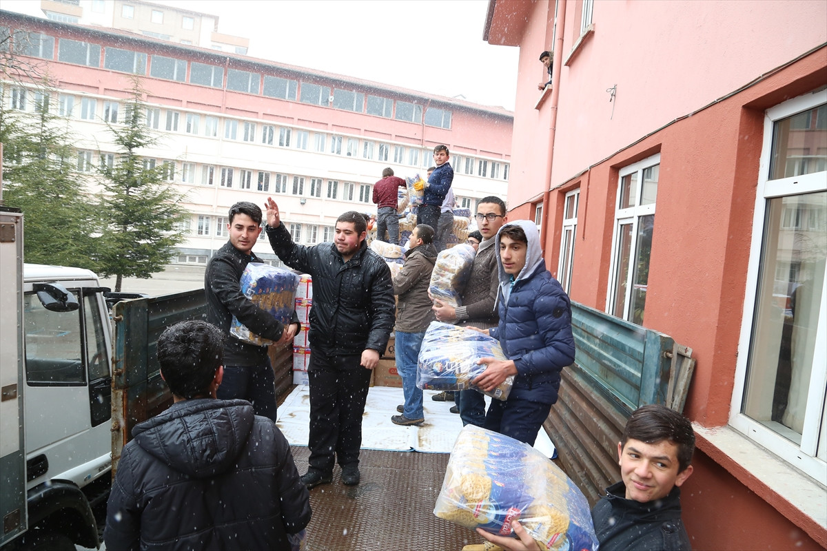 Erol Olçok Anadolu İmam Hatip Lisesi Öğrenci Meclisi tarafından başlatılan ve kent merkezindeki bazı okullardaki öğrencilerin de desteğiyle temin edilen un, makarna ve bakliyat başta olmak üzere 18 tonluk gıda malzemesinin bölgeye gönderilmesi amacıyla okul bahçesinde tören düzenlendi.