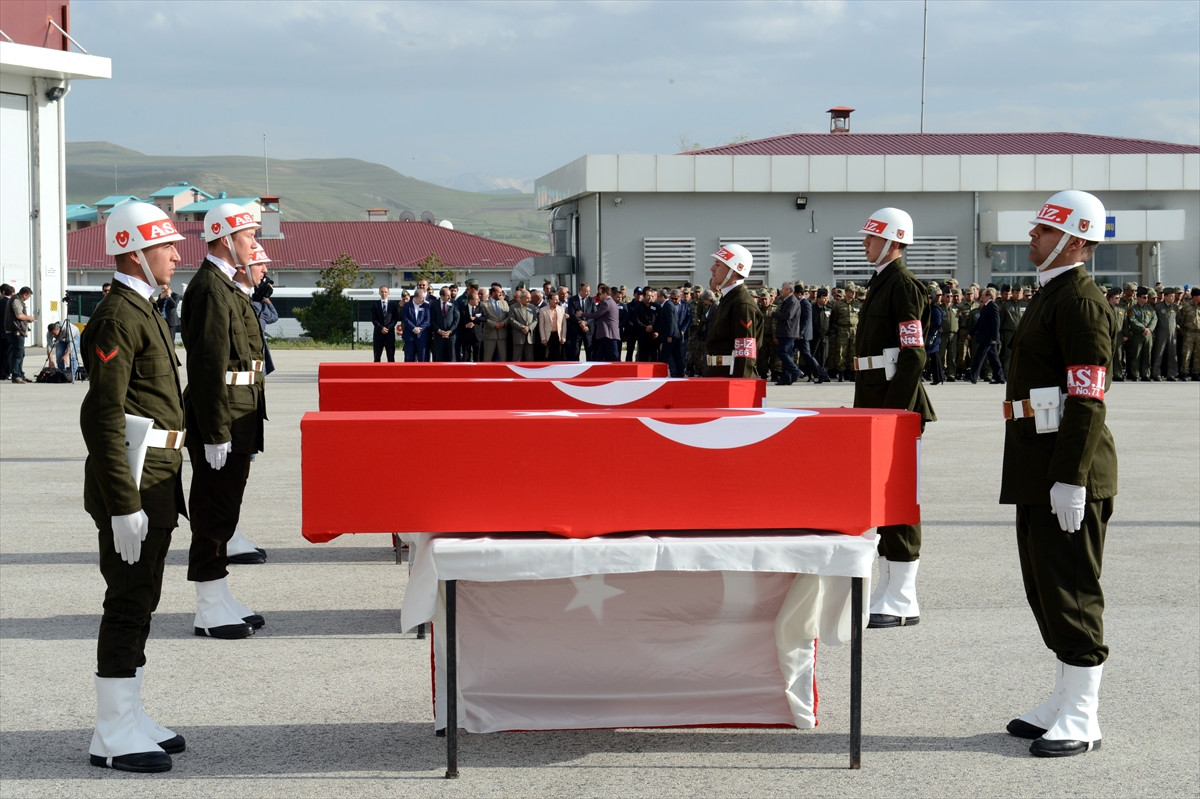 VAN (AA) - Hakkari'nin Çukurca ilçesinde terör örgütü PKK mensuplarıyla çıkan çatışma sonrası bölgeye sevk edilen helikopterin düşmesi sonucu şehit düşen 2 pilot üsteğmen ve sağlıkçı astsubay için tören düzenlendi.