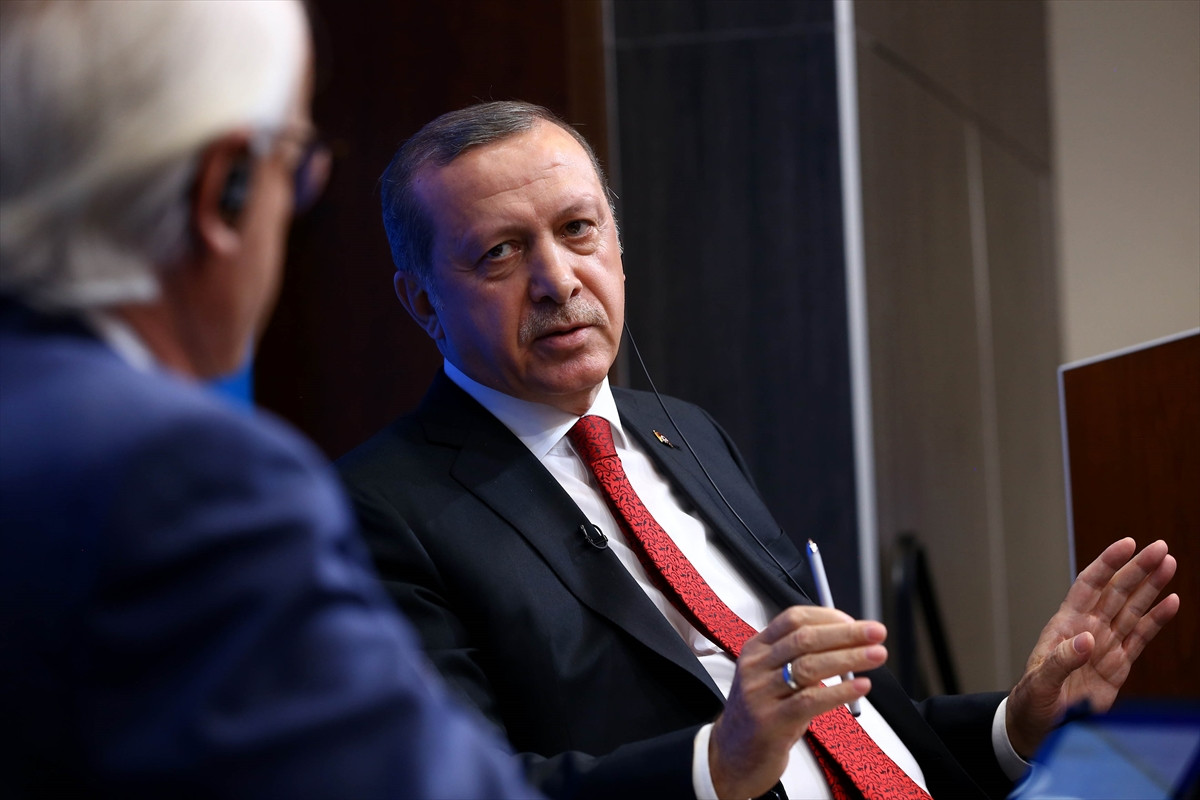 Erdoğan, Brookings Enstitüsündeki konuşmasına, Diyarbakır'da güvenlik güçlerini hedef alan terör saldırının gerçekleştiğini belirterek başladı.