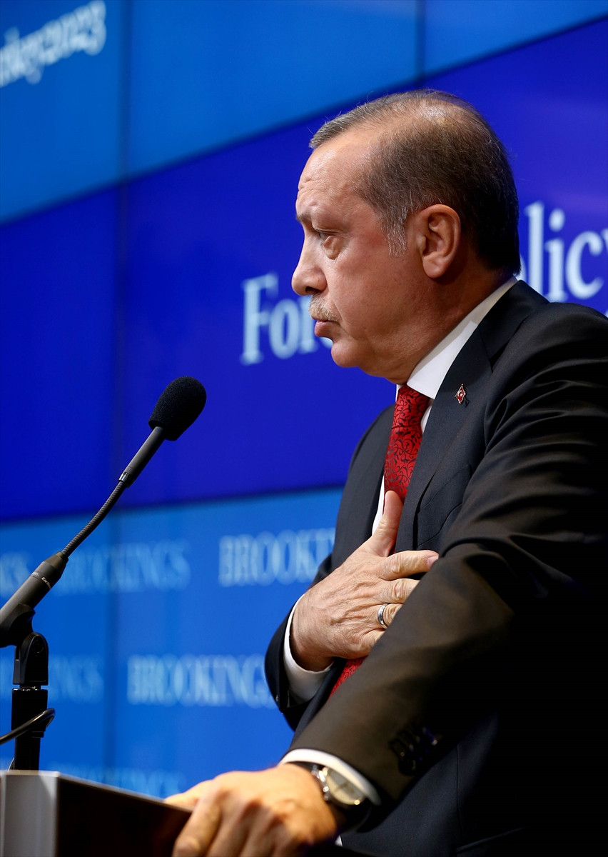 ABD'nin Washington kentinde temaslarını sürdüren Cumhurbaşkanı Erdoğan, Brooking Enstitüsünde, "Küresel Sınamalar ve Türkiye'nin 2023 Hedefleri" temalı bir konuşma yaptı.