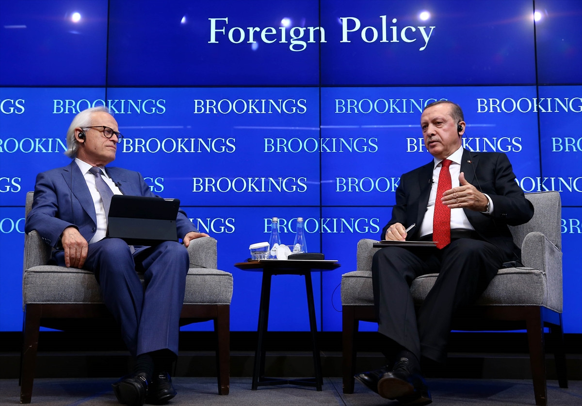 ABD'nin Washington kentinde temaslarını sürdüren Cumhurbaşkanı Erdoğan, Brookings Enstitüsünde, "Küresel Sınamalar ve Türkiye'nin 2023 Hedefleri" temalı bir konuşma yaptı.