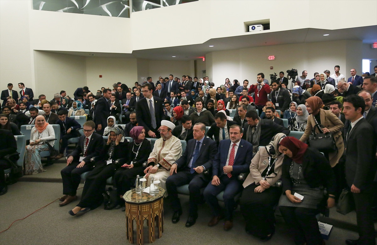Erdoğan, Türken Vakfınca, Türk Amerikan Kültür ve Medeniyet Merkezi'nde düzenlenen etkinlikte üniversite öğrencileriyle bir araya geldi.