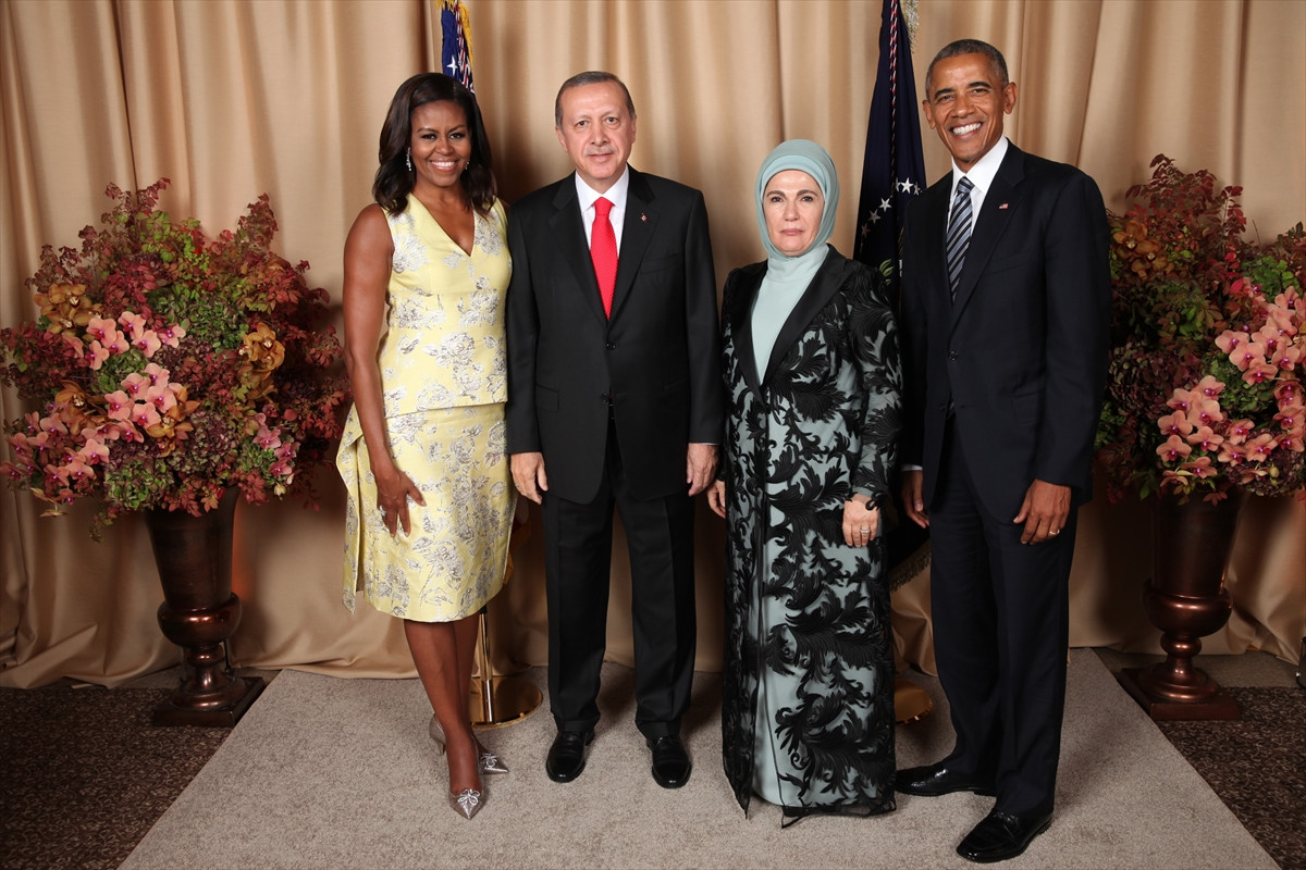 NEW YORK (AA) - Cumhurbaşkanı Recep Tayyip Erdoğan, ABD Başkanı Barack Obama'nın Birleşmiş Milletler (BM) Genel Kurulu genel görüşmeleri için gelen heyet başkanlarına verdiği resepsiyona iştirak etti.