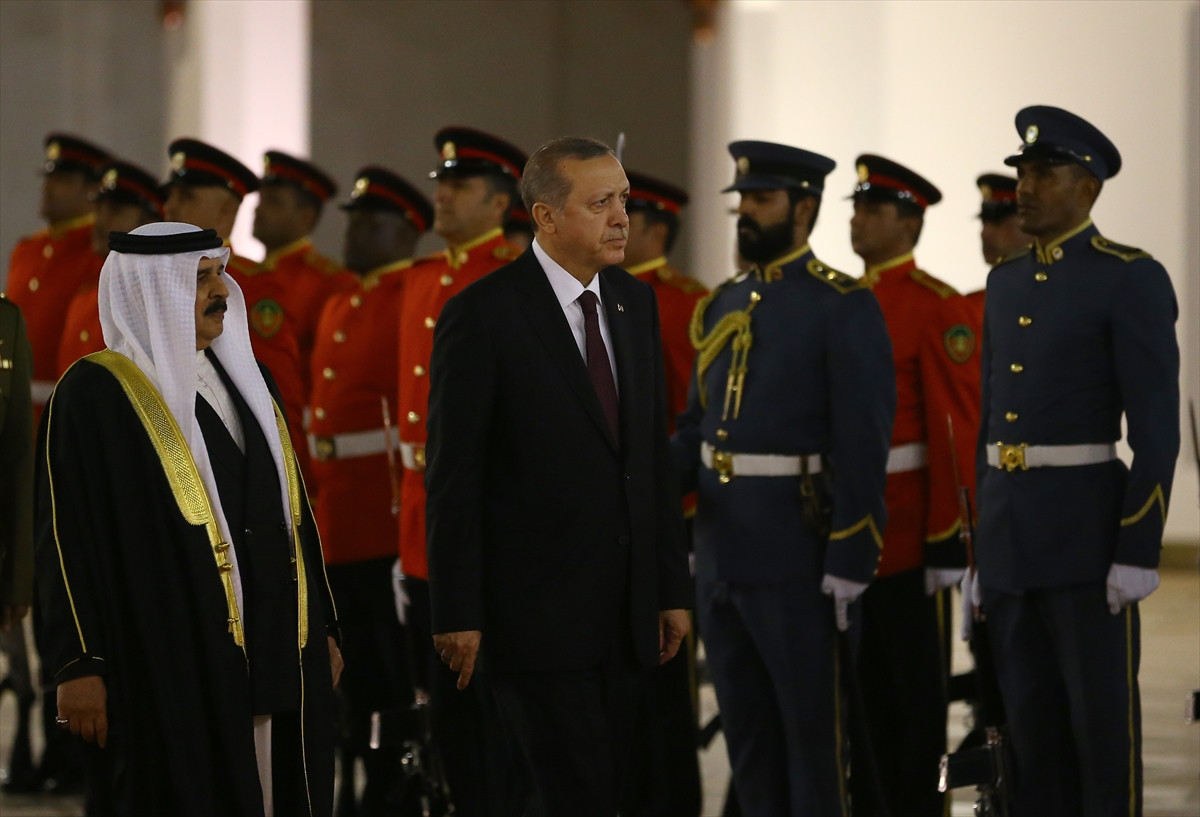 Cumhurbaşkanı Erdoğan, Bahreyn Sakhir Askeri Havaalanı'na gelişinde, Bahreyn Kralı Hamad bin İsa Al Halife, Bahreyn Başbakanı Halife bin Salman Al Halife, Bahreyn Veliaht Prensi Salman bin Hamad Al Halife, Bahreyn Dışişleri Bakanı Khalid bin Ahmad Al Halife ile Türkiye'nin Manama Büyükelçisi Hatun Demirer ve büyükelçilik mensuplarınca karşılandı.