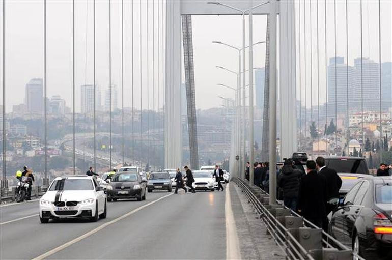 Cumhurbaşkanı Erdoğan'ın sorunla ilgilendiğini duyması üzerine bu kişi, köprüden aşağı atlama tehdidine son vererek Erdoğan'ın makam aracının yanına gitti.