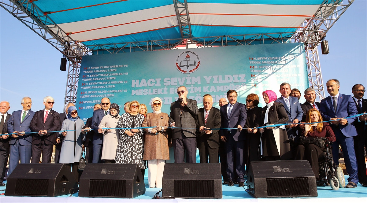 Erdoğan, özellikle yaklaşık 61 milyon liralık bütçeyle inşa edilen ve ismine "Hacı Sevim Yıldız Mesleki Eğitim Kampüsü" denilen tesise kendisinin "eğitim-öğretim külliyesi" dediğinin altını çizdi.