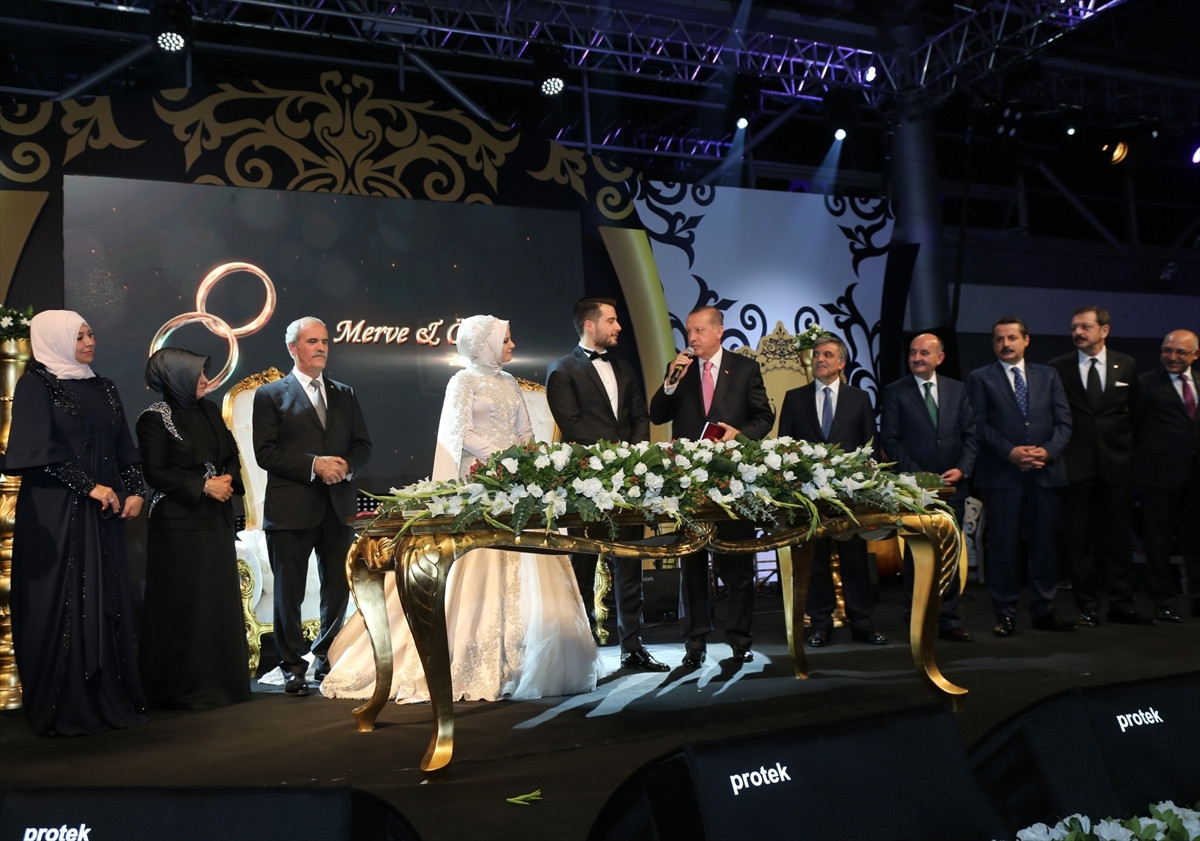 Cumhurbaşkanı Erdoğan ile Emine Erdoğan, Ömer Altepe ve Merve Burkay'ın Merinos Kültür ve Kongre Merkezi'nde gerçekleştirilen nikah törenine katıldı.