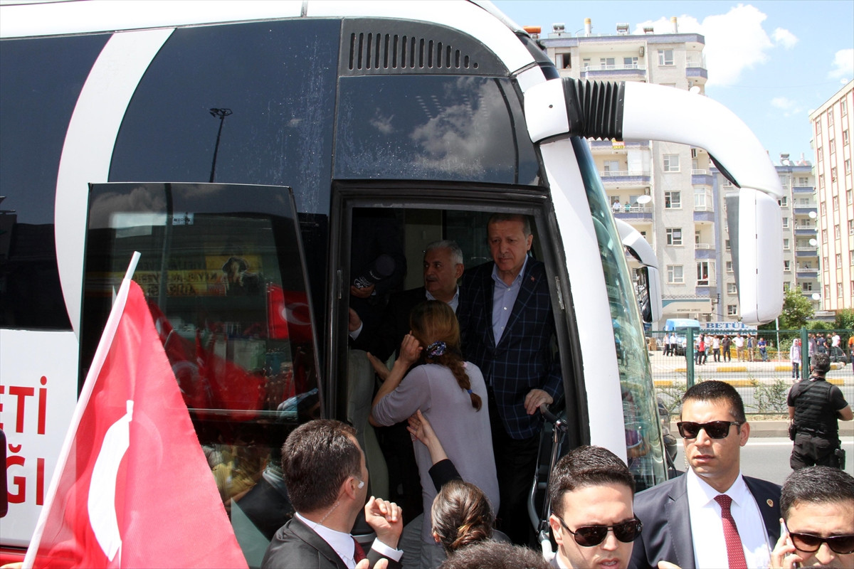 Erdoğan'ı, Diyarbakır Havalimanı'nda Başbakan Binali Yıldırım, İçişleri Bakanı Efkan Ala, Kalkınma Bakanı Lütfi Elvan, Vali Hüseyin Aksoy, İl Emniyet Müdürü Adnan Taşdan, İl Jandarma Alay Komutanı Kurmay Albay Hasan Ceyhun Keleş ve öteki ilgililer karşıladı.