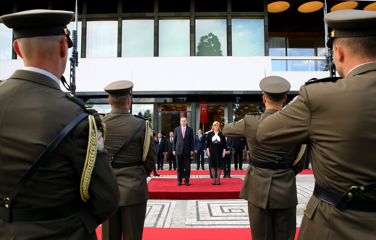 ZAGREB (AA) - Cumhurbaşkanı Recep Tayyip Erdoğan, Hırvatistan Cumhurbaşkanı Kolinde Grabar Kitaroviç tarafından resmi törenle karşılandı.