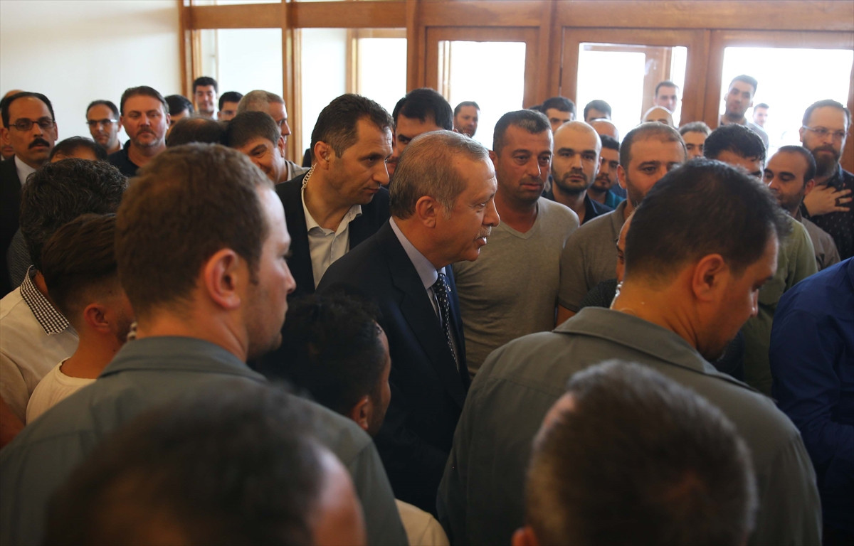 İSTANBUL (AA) - Cumhurbaşkanı Recep Tayyip Erdoğan, Devlet Konukevinde istirahat ettiği odasından çıkarak salonda kendisini bekleyen vatandaşlarda selamlaştı.