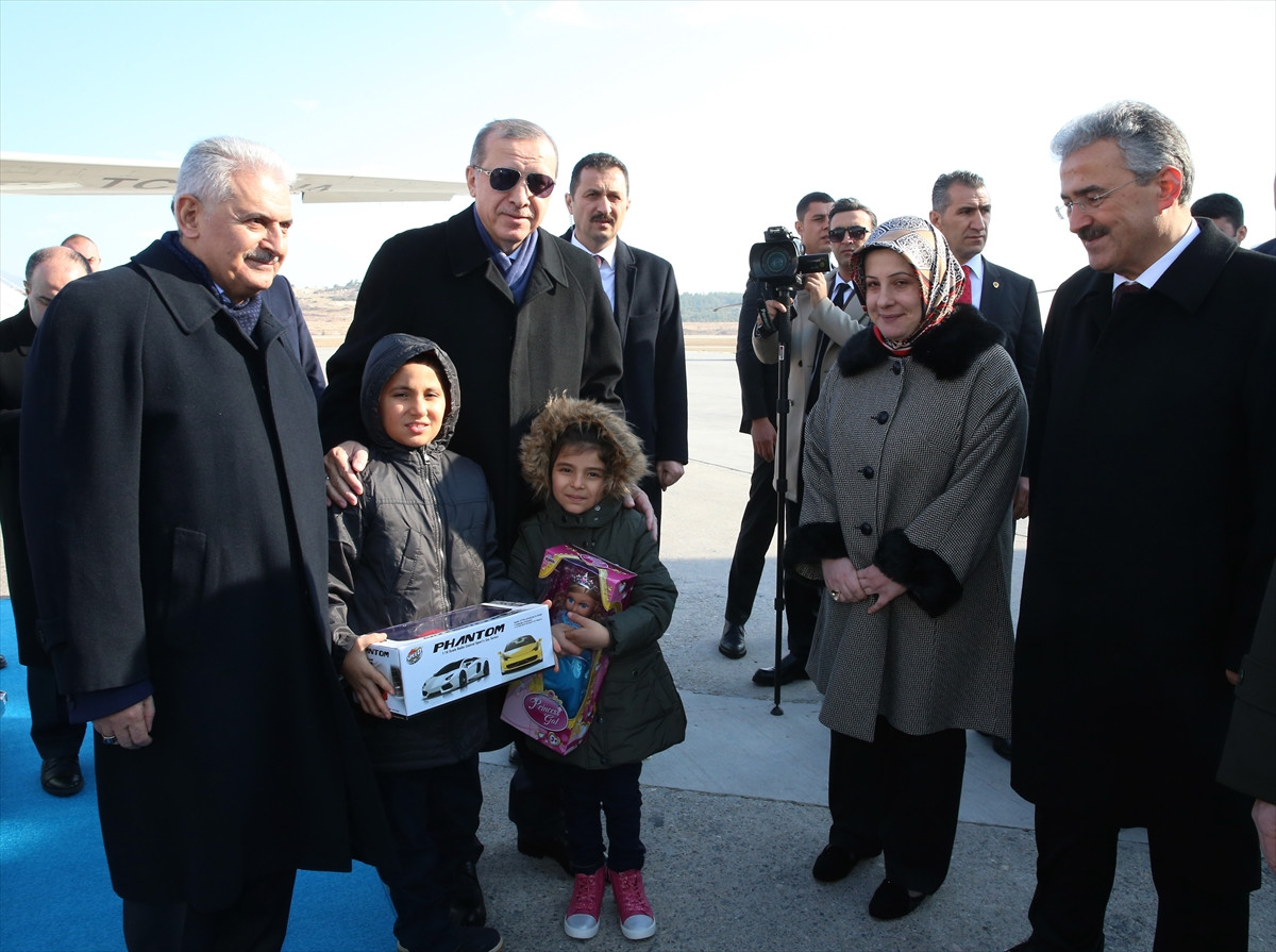 Erdoğan'ı, İzmir Adnan Menderes Havalimanı'nda Başbakan Binali Yıldırım, Başbakan Yardımcısı Mehmet Şimşek, Gıda Tarım ve Hayvancılık Bakanı Faruk Çelik, Ekonomi Bakanı Nihat Zeybekci, AK Parti Genel Başkan Yardımcısı Cevdet Yılmaz'ın yanı sıra İzmir Valisi Erol Ayyıldız ve İzmir Büyükşehir Belediye Başkanı Aziz Kocaoğlu ile diğer ilgililer karşıladı.