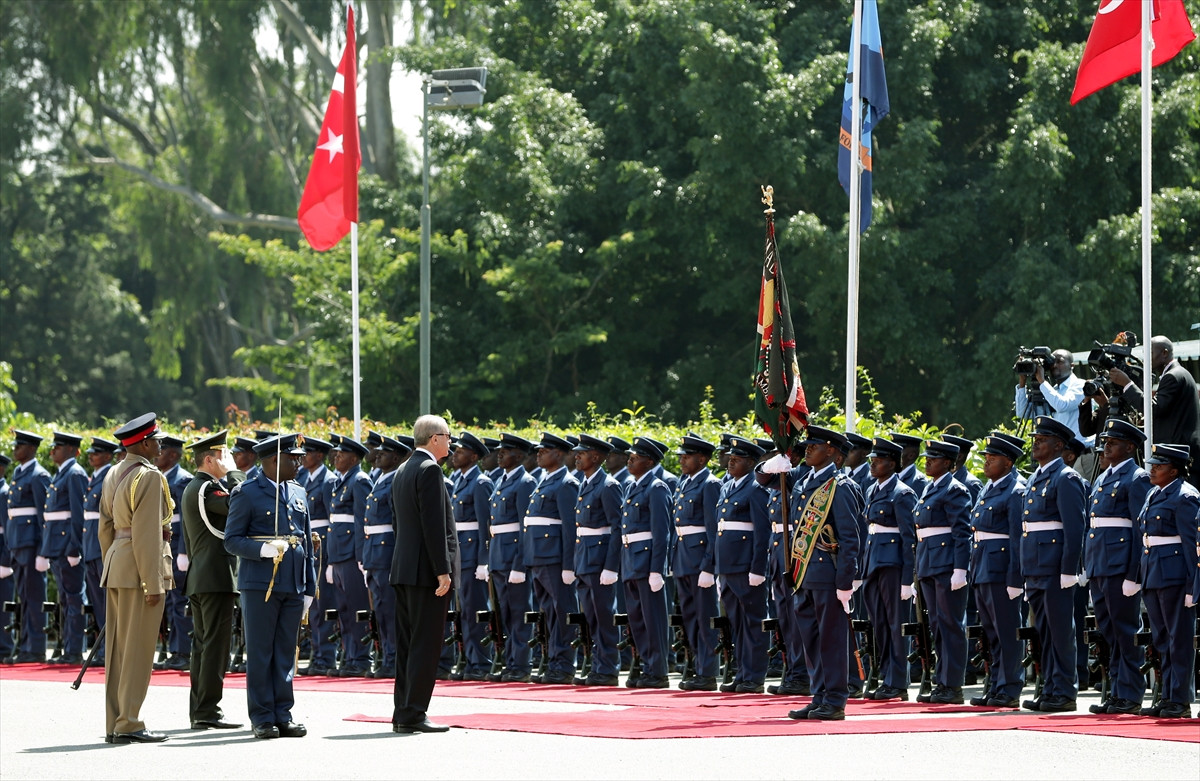NAİROBİ (AA) - Cumhurbaşkanı Recep Tayyip Erdoğan, resmi ziyaret için bulunduğu Kenya'da Cumhurbaşkanı Uhuru Kenyatta tarafından resmi törenle karşılandı.