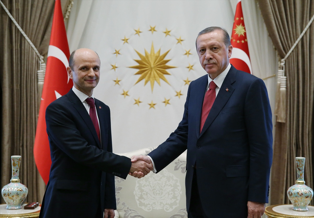 Cumhurbaşkanlığı Külliyesi'nde gerçekleşen kabulde, Büyükelçi Mucunski, Erdoğan'a güven mektubunu sundu.