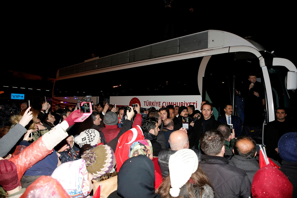 Erdoğan, Trabzon'a gelişinde havalimanı önünde kendisini bekleyen vatandaşlara hitap etti.