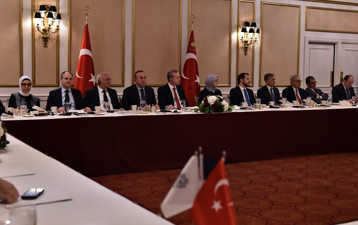 Cumhurbaşkanı Recep Tayyip Erdoğan, Washington'da bazı düşünce kuruluşu temsilcileriyle bir araya geldi. Erdoğan, konakladığı St. Regis Oteli'de görüşmeleri sağladı. Basına kapalı gerçekleşen görüşmeye, ABD Başkanı Barack Obama'nın özel asistanı, Beyaz Saray Ulusal Güvenlik Konseyi Avrupa İlişkileri Kıdemli Genel Müdürü Karen Donfried, Washington Enstitüsü yöneticisi Michael Singh, Woodrow Wilson Merkezi Başkanı Jane Harman, Georgetown Üniversitesi Uluslararası İlişkiler Fakültesi Dekanı Prof. Dr. Joel Hellman, SAIS/Johns Hopkins Üniversitesi Dekanı Prof. Vali Nasr'ın da aralarında bulunduğu çok sayıda düşünce kuruluşu temsilcisi ve akademisyen katıldı. Görüşmede, Aile ve Sosyal Politikalar Bakanı Sema Ramazanoğlu, Dışişleri Bakanı Mevlüt Çavuşoğlu, Enerji ve Tabii Kaynaklar Bakanı Berat Albayrak, Gençlik ve Spor Bakanı Akif Çağatay Kılıç ile Ekonomi Bakanı Mustafa Elitaş da bulundu.