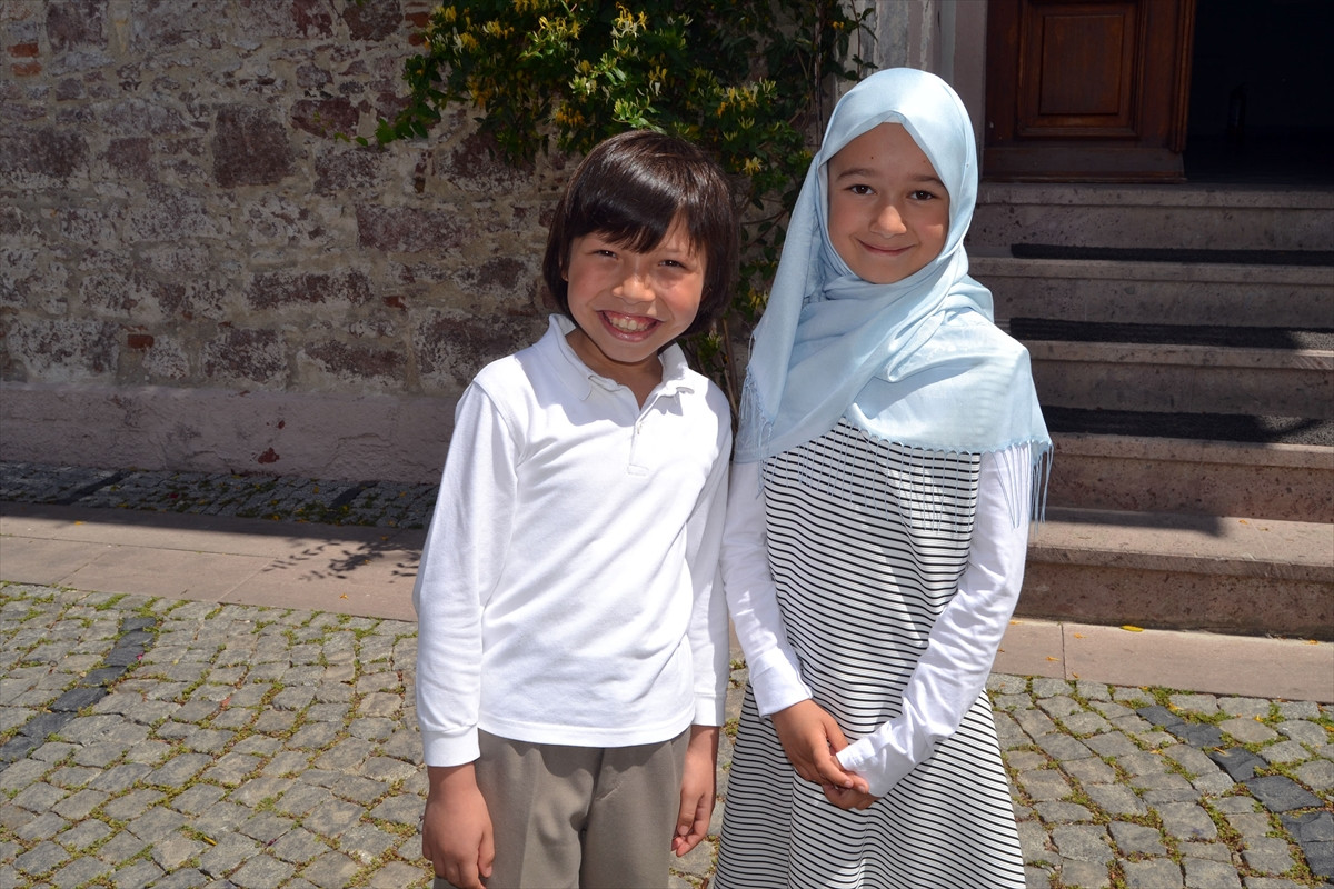 BALIKESİR (AA) - 23 Nisan Ulusal Egemenlik ve Çocuk Bayramı etkinlikleri kapsamında Cumhurbaşkanlığı Külliyesi'ndeki programa Balıkesir'in Ayvalık ilçesinden katılan Kaan Yıldırım ile Zeynep Rümeysa Güzel, Cumhurbaşkanı Recep Tayyip Erdoğan ve eşi Emine Erdoğan'ı görmenin mutluluğunu yaşıyor.
