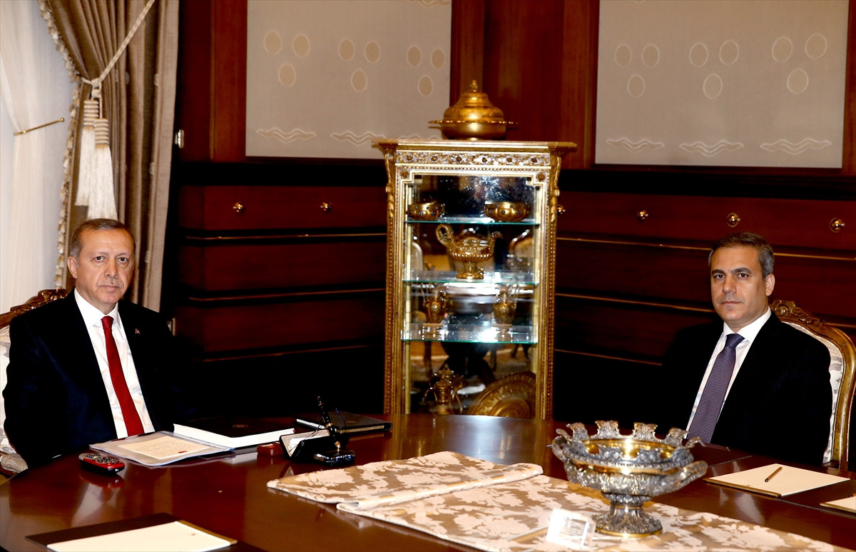 ANKARA (AA) - Cumhurbaşkanı Recep Tayyip Erdoğan, MİT Müsteşarı Hakan Fidan'ı kabul etti.