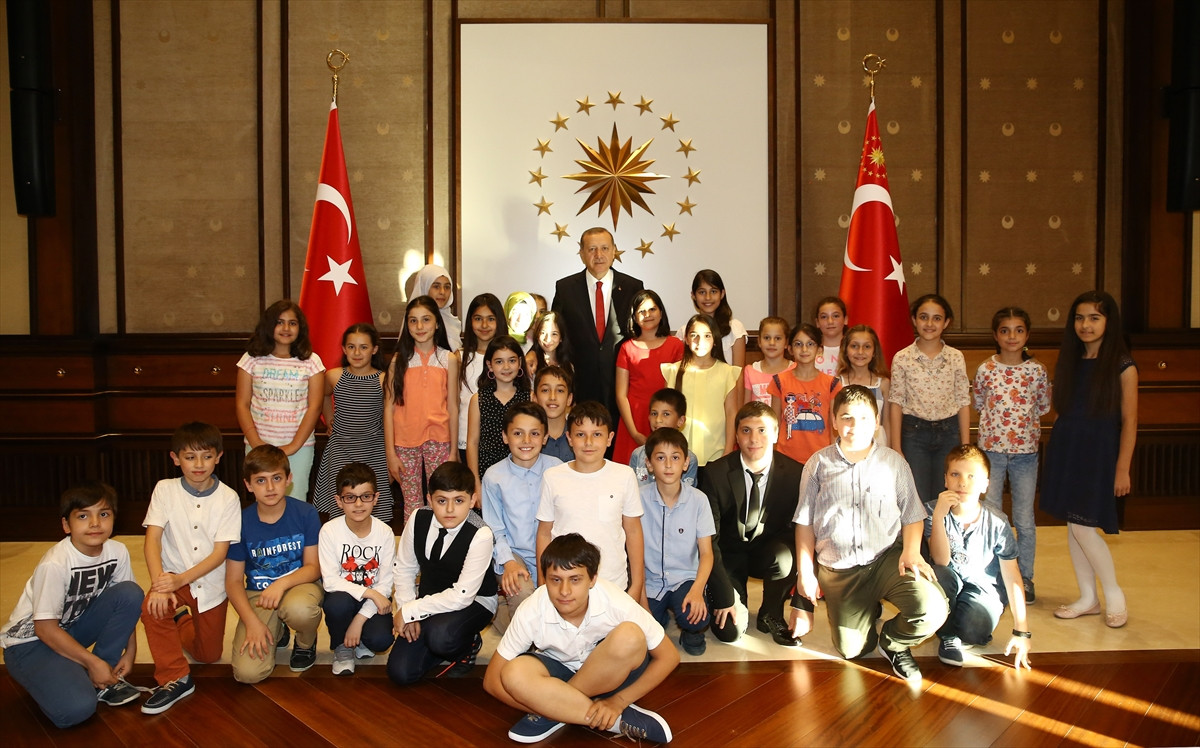 ANKARA (AA) - Cumhurbaşkanı Recep Tayyip Erdoğan, "Asrın İmecesi Sevgi Kilimi-1299 Minik El Bir Bayrak" proje heyetini kabul etti.