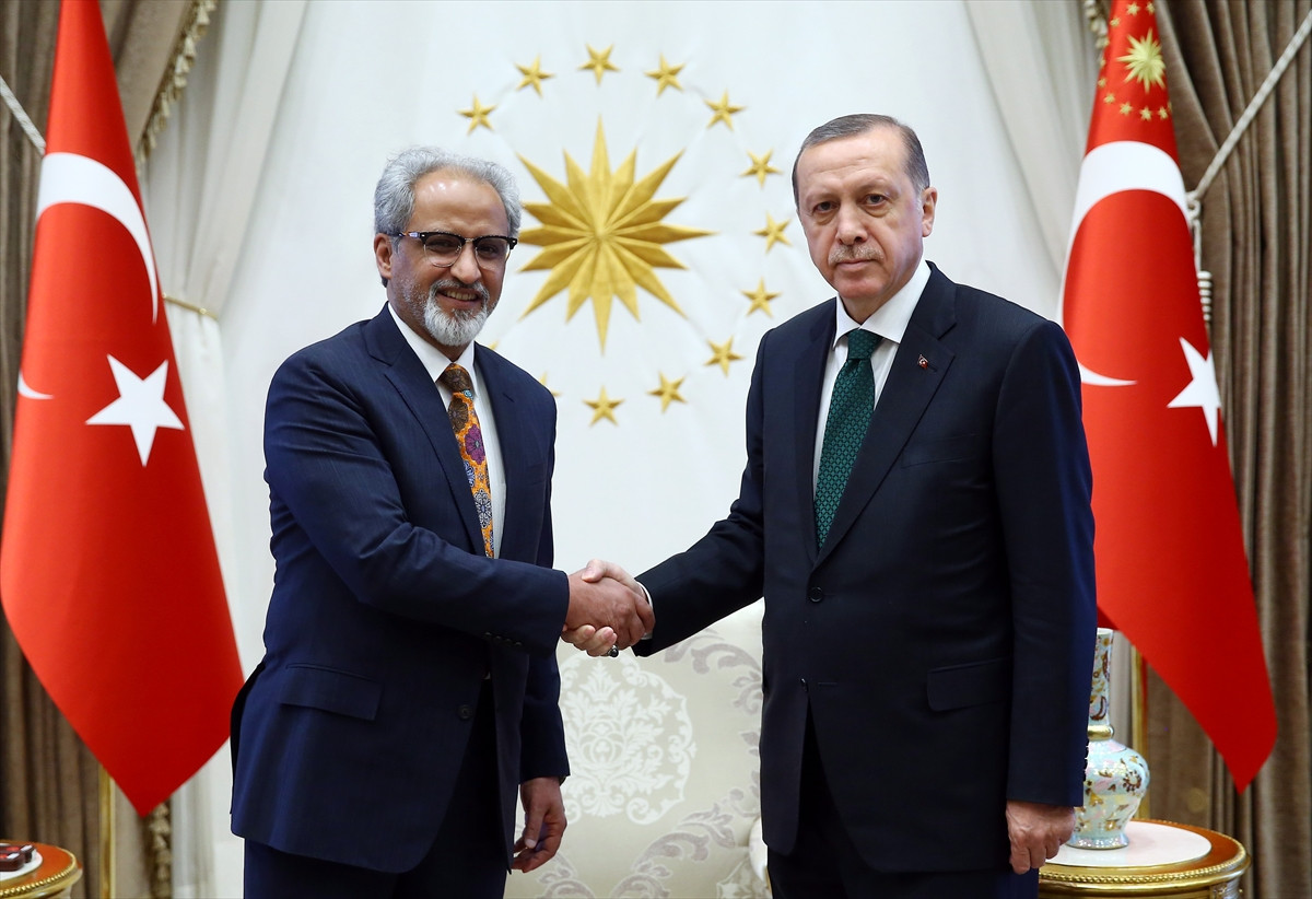 Cumhurbaşkanlığı Külliyesi'nde gerçekleşen kabulde Zevavi, Cumhurbaşkanı Erdoğan'a güven mektubunu sundu.
