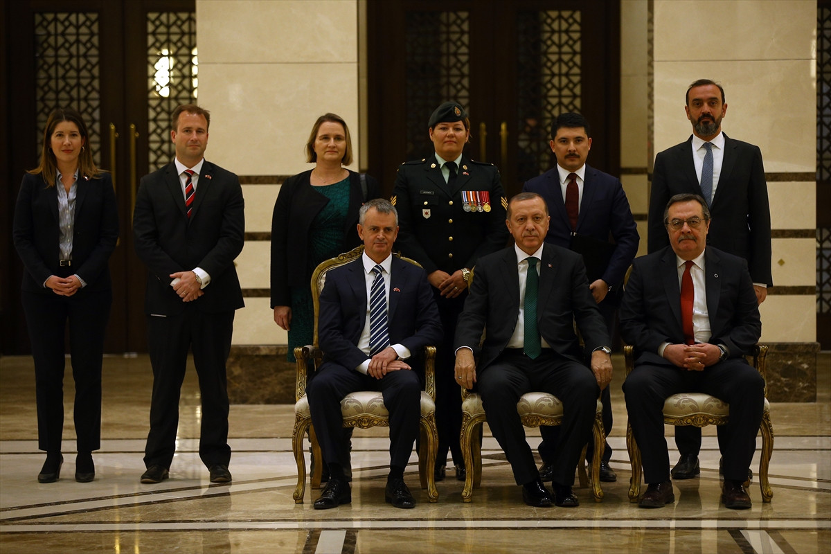 Cooter'ın bazı büyükelçilik mensuplarını Cumhurbaşkanı Erdoğan'a takdiminin ardından hatıra fotoğrafı çektirildi.