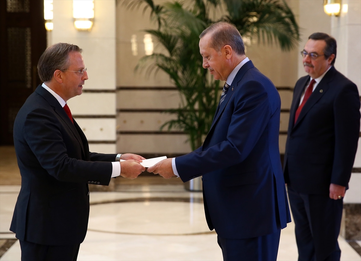 Cumhurbaşkanlığı Külliyesi'nde gerçekleşen kabulde, Büyükelçi Olling, Cumhurbaşkanı Erdoğan'a güven mektubunu sundu.