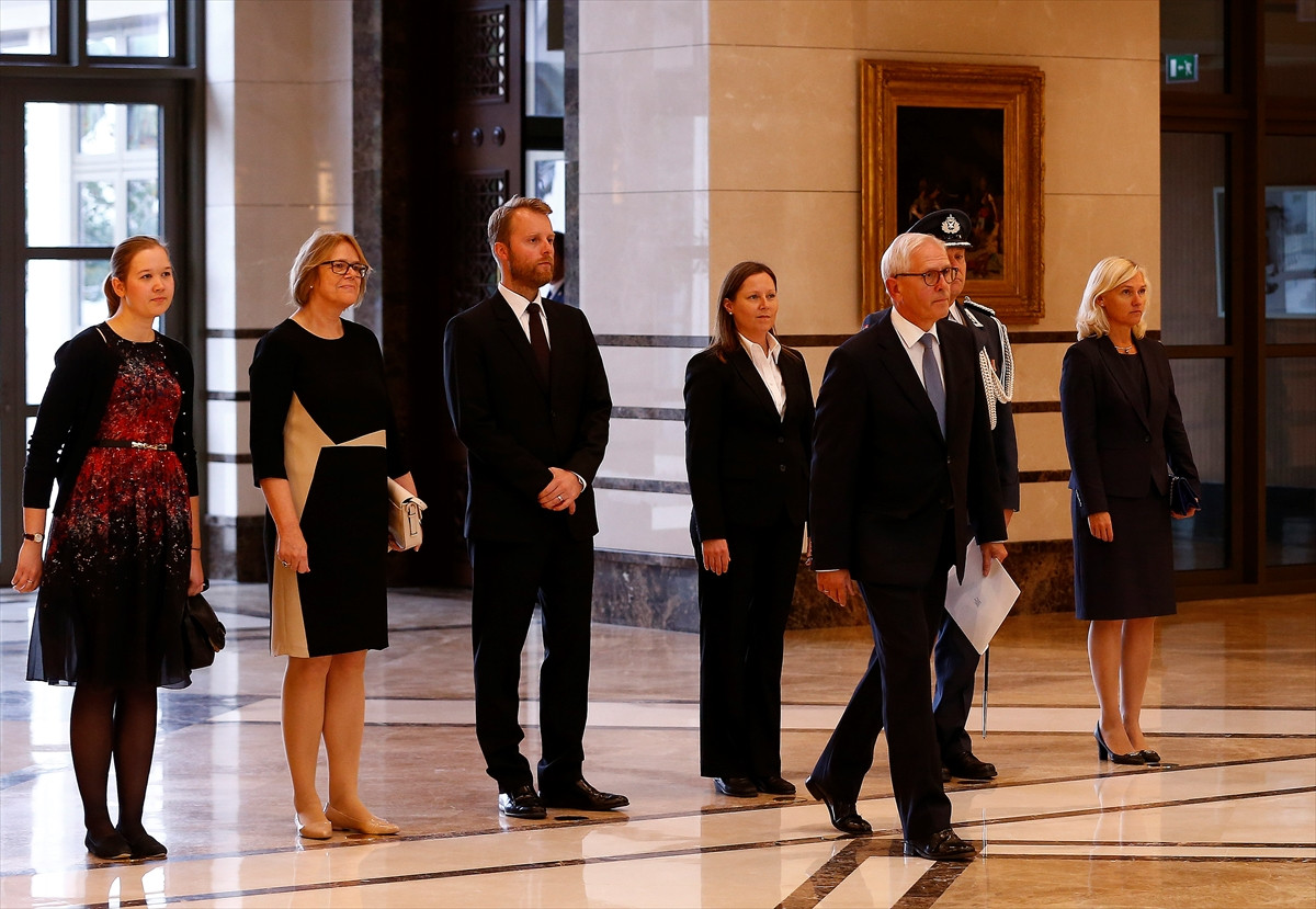 Vegard Ellefsen'in eşi ve kızı ile bazı büyükelçilik mensuplarını Cumhurbaşkanı Erdoğan'a takdiminin ardından hatıra fotoğrafı çektirildi.