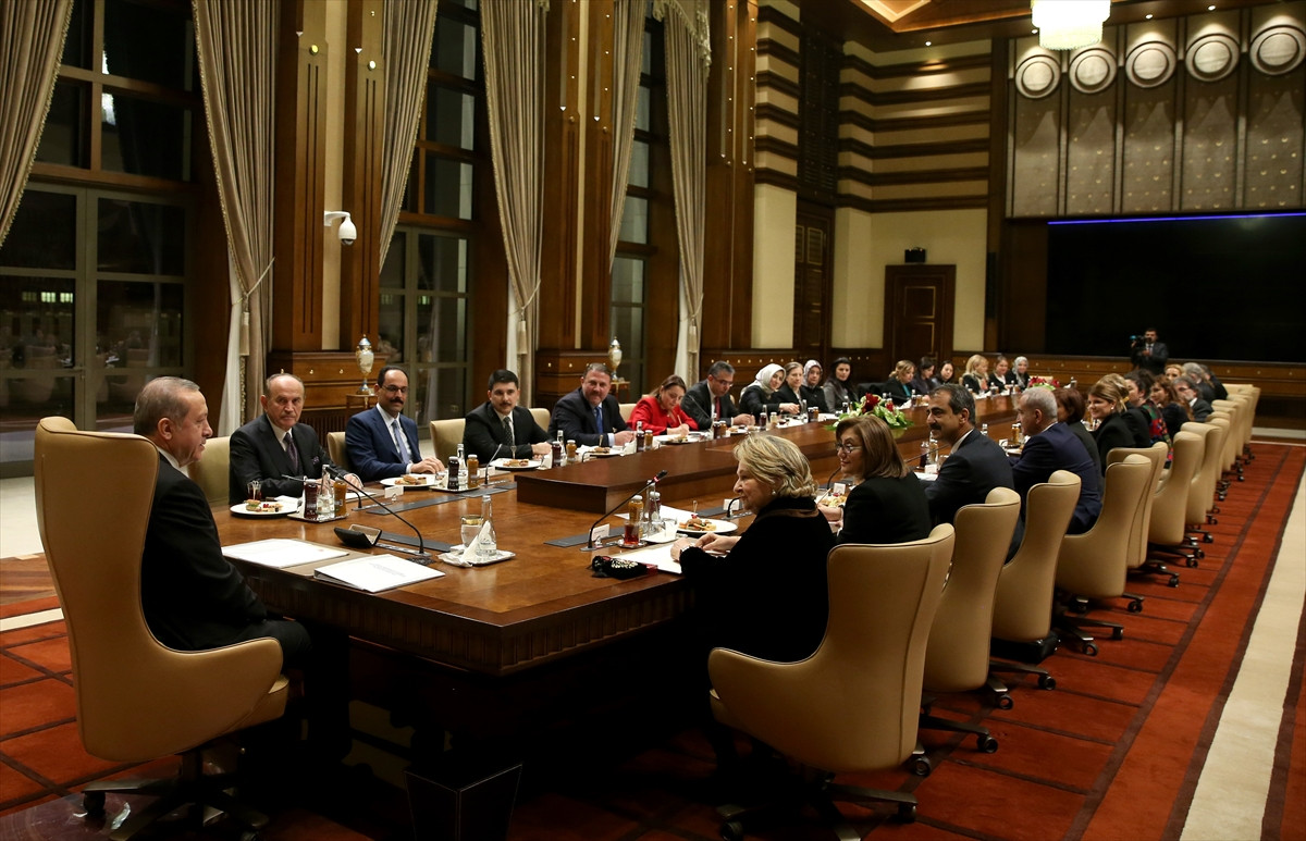 ANKARA (AA) - Cumhurbaşkanı Recep Tayyip Erdoğan, Kezban Hatemi ile beraberindeki Türk Demokrasi Platformu heyetini kabul etti.