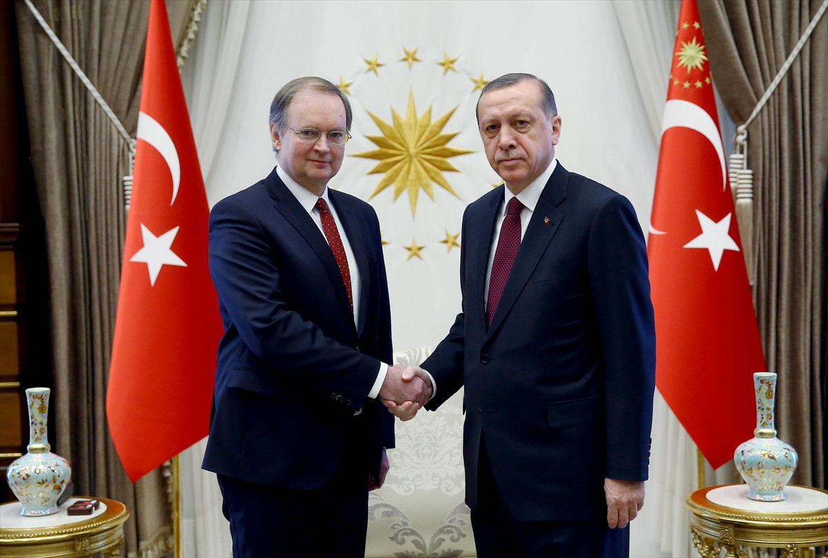 Cumhurbaşkanlığı Külliyesi'nde gerçekleşen kabulde, Berger, Cumhurbaşkanı Erdoğan'a güven mektubunu sundu.